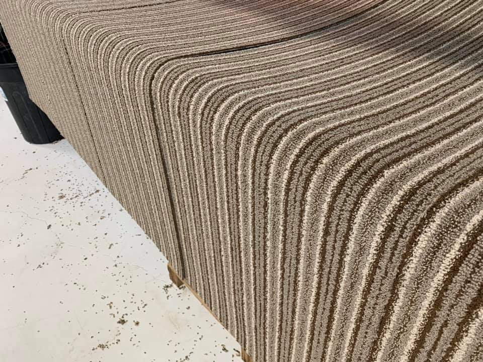 La plinthe de tapis, ou base de tapis, est une bande fabriquée à partir de tapis ou de carreaux de tapis. Nous découpons le matériau en bandes de 1 à 12 pouces de large et appliquons une finition soignée sur les bords supérieurs afin de prévenir l’effilochage.